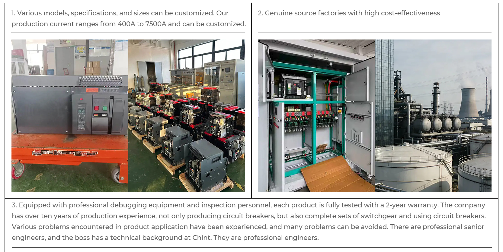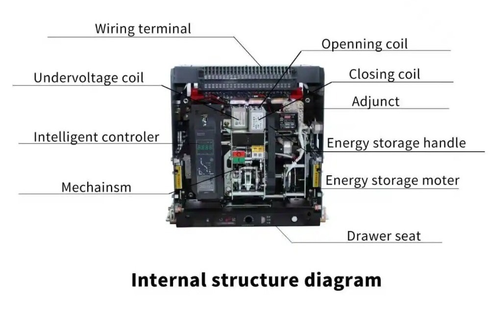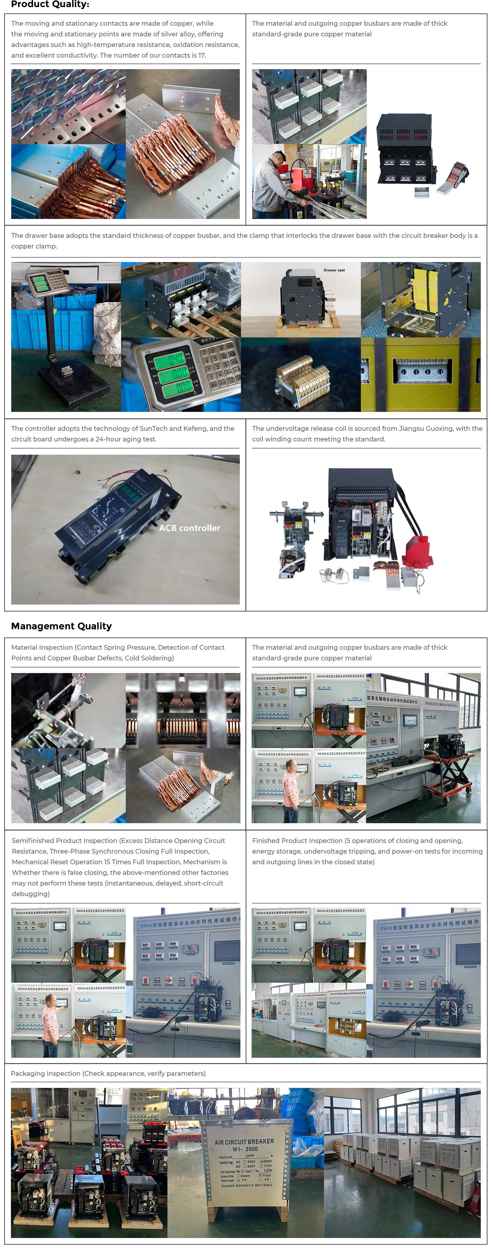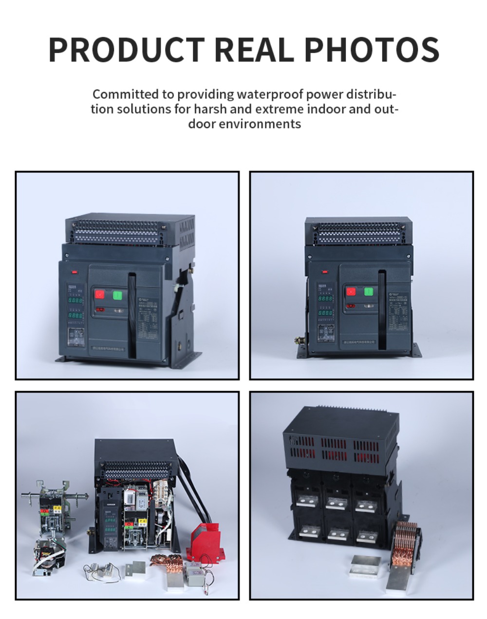 When the product is in the closed and powered on state, if there is overload or short circuit, undervoltage or phase loss in the circuit, the current transformer in the ACB will detect the current signal, which will be transmitted to the controller. The controller will then send a command to the mechanism to trip, causing the dynamic and static contacts to separate and disconnect, and the product will open, achieving the function of protecting the backend load.