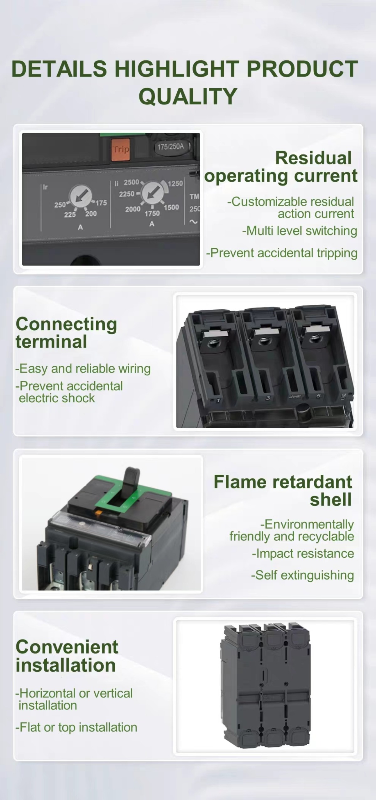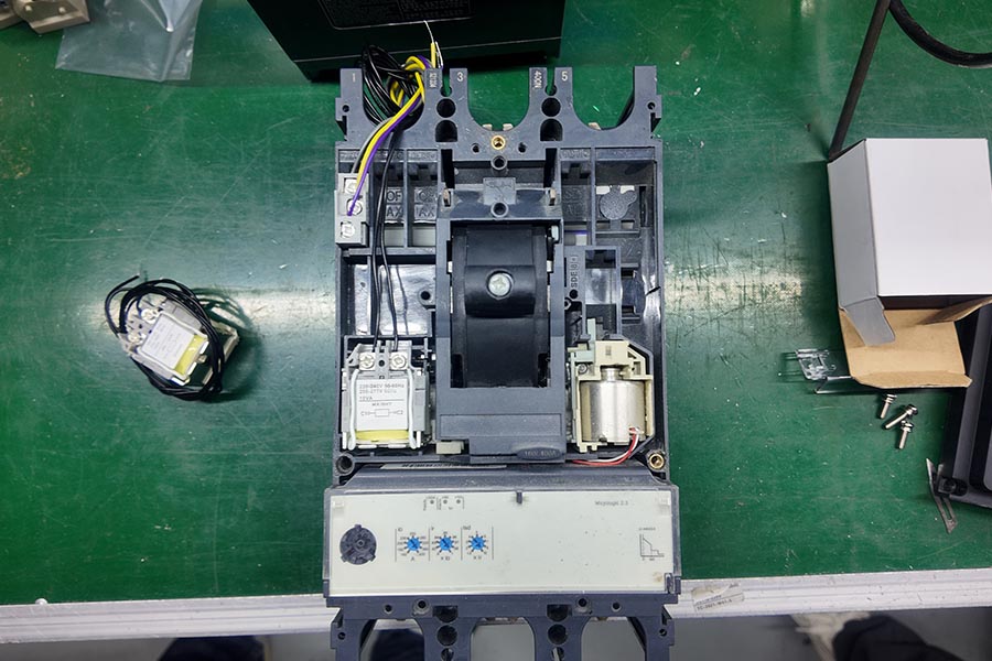 When the current exceeds the set value and lasts for a certain period of time, the thermal element bends due to heat (or the electronic unit sends a signal), triggering the mechanical mechanism to disconnect the circuit and prevent the circuit from overheating.