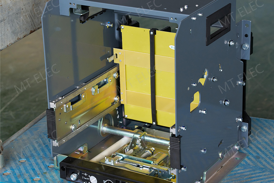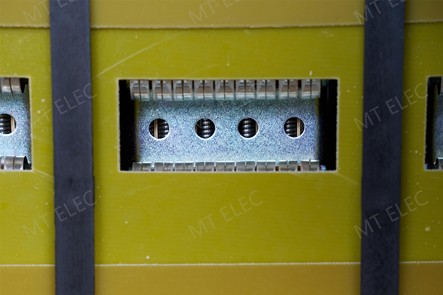 | The drawer base adopts the standard thickness of copper busbar, and the clamp that interlocks the drawer base with the circuit breaker body is a copper clamp. | ![]() |