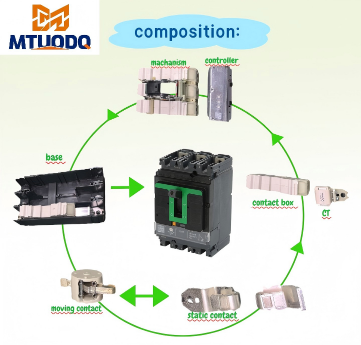 When the current exceeds the set value and lasts for a certain period of time, the thermal element bends due to heat (or the electronic unit sends a signal), triggering the mechanical mechanism to disconnect the circuit and prevent the circuit from overheating.